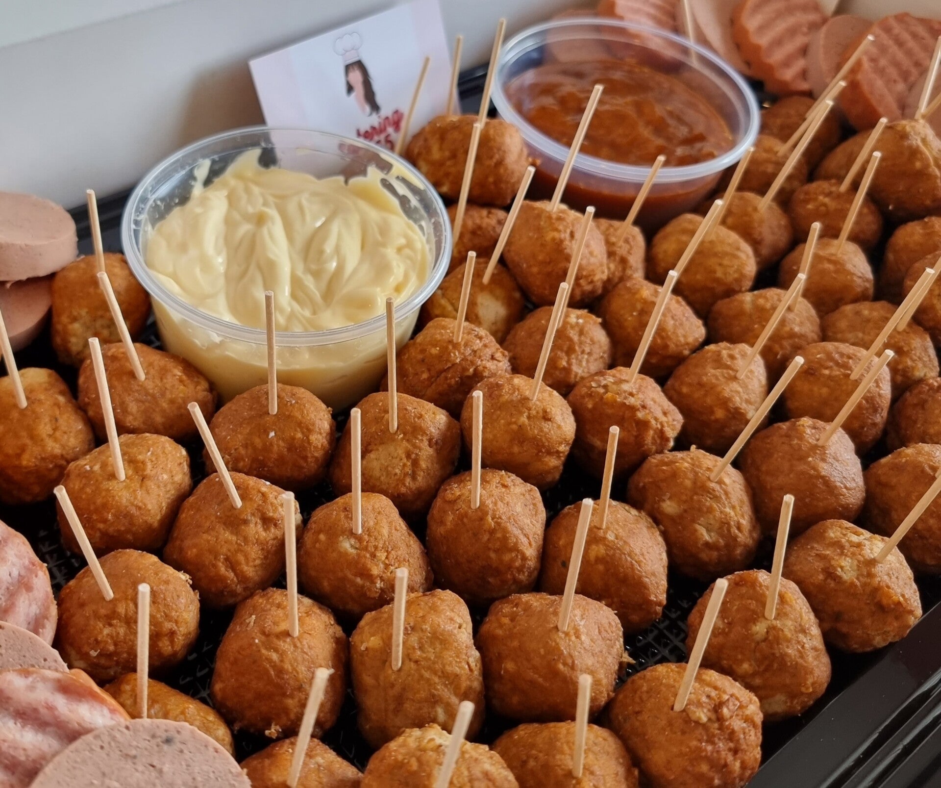 36 borrelgehaktballetjes met 2 sauzen €15,-